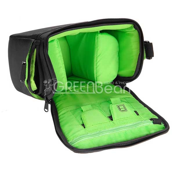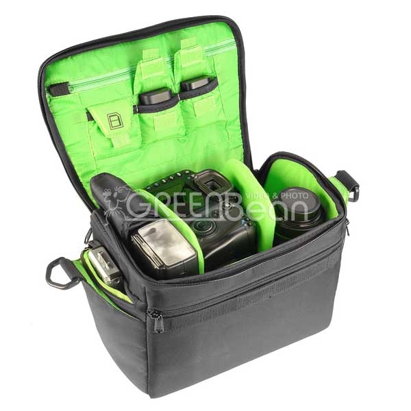 Сумка GreenBean Guardian 03, самая большая из серии, вмещает в себя зеркальную камеру с 3–4 дополнительными объективами, вспышку и аксессуары. Упругий вспененный материал обшитый износоустойчивым нейлоном и вельветовое внутреннее покрытие защитит оборудование от климатических воздействий, царапин и повреждений. Регулируемая по длине лямка с мягким наплечником и широкая ручка обеспечат комфортную эксплуатацию. Двухзамковая молния для быстрого доступа к содержимому. Сумка снабжена креплением для размещения на телескопической ручке чемодана или тележки. Основной отсек для техники имеет регулируемые перегородки на липучках, благодаря этому пространство внутри рюкзака можно настроить под необходимое оборудование. Внутри расположены три кармана на липучках и большой карман на молнии, в них можно разместить карты памяти, батарейки, светофильтры