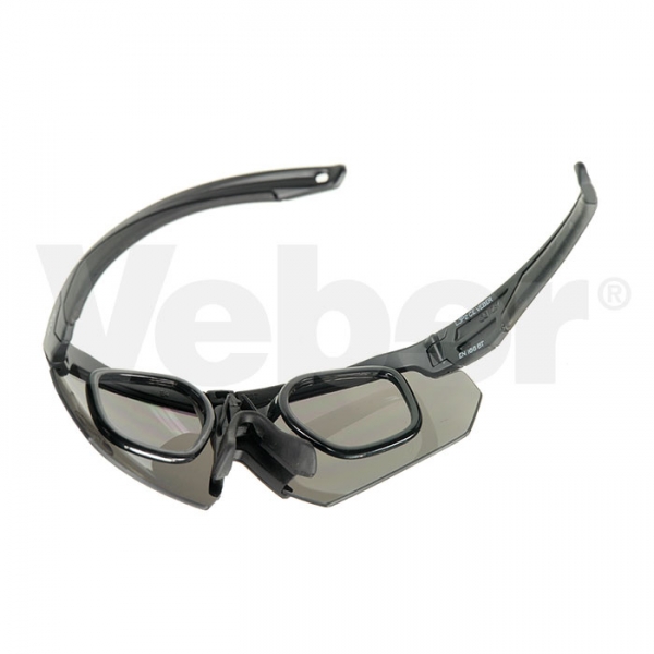 Veber Tactic Force L3P2 - баллистические стрелковые противоосколочные очки с быстросменными ударопрочными поликарбонатными линзами и диоптрической вставкой. Очки предназначены для защиты органов зрения от ультрафиолета, ветра, пыли, а также попадания крупных частиц во время активного отдыха и занятия экстремальными видами спорта, при стрельбе в тире, на охоте или проведении тактических учебных операций. Подходят для повседневного использования. Цвет оправы – черный. Очки комплектуются тремя сменными линзами (бесцветные, темно-серые и желтые), диоптрической вставкой, жестким футляром на молнии, чехлом и фирменным регулируемым шейным ремешком.