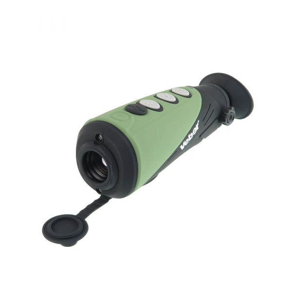 Тепловизионный монокуляр Veber Night Eagle M19/384 Тепловизионный монокуляр Veber Night Eagle M19/384 используется охотниками, натуралистами, спасателями для обнаружения объектов и наблюдения за ними ночью и днем в условиях плохой видимости, в любое время года. В отличие от приборов ночного видения на базе ЭОП, тепловизионный прибор не нуждается во внешней подсветке. Качественное изображение даже при наблюдении за движущимися объектами обеспечивает ключевой элемент монокуляра – неохлаждаемая микроболометрическая матрица на основе оксида ванадия, имеющая разрешение 384х288 пикселей (размер пикселя 17 мкм) и частоту обновления изображения 50 Гц. Высокую разрешающую способность прибора гарантирует температурная чувствительность матрицы (<50 мК), позволяющая распознать минимальные перепады температуры на обследуемом участке. Палитру изображения можно выбратьв соответствии с задачами. Предусмотрены режимы горячего белого (объект с максимальной температурой отображается в ярком белом цвете), горячего черного, черно-белого с выделением самых горячих областей красным и цветной. Энергоэффективный прибор способен до 7 часов работать автономно от встроенного литий-ионного аккумулятора. Первоначально в рабочее состояние – от включения до готовности к наблюдению – монокуляр приходит за 20 с. После этого коротким нажатием кнопки питания прибор можно переводить в режим ожидания, продлевая тем самым время автономной работы, и быстро включать в нужный момент. Индивидуальная подстройка изображения под особенности зрения – диоптрийная коррекция – выполняется с помощью барабанчика на окуляре. Для комфортной и продуктивной работы с прибором предусмотрен мягкий эргономичный наглазник, светодиодный фонарь для подсветки, площадка для установки на штатив с резьбой 1/4“, видеовыход для вывода аналогового изображения на монитор. Корпус монокуляра c покрытием soft touch – матовый, теплый и бархатистый на ощупь. От воздействия влаги и пыли кнопки защищены резиновыми накладками, а разъем для питания/видеовыхода – заглушкой.