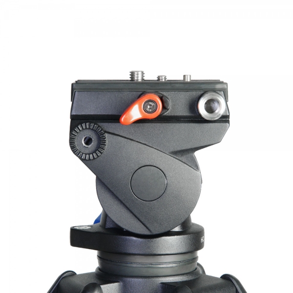 Регулируемая система контрбаланса Штатив оснащен прецизионной жидкостной 2D-видеоголовкой с механизмом демпфирования и регулируемой системой контрбаланса. В основе системы контрбаланса лежит механизм, регулирующий силу натяжения внутренней пружины, который позволяет быстро настраивать контрбаланс для каждой конкретной камеры. Быстросъемная скользящая площадка Скользящая быстросъемная площадка размером 50х90 мм поможет сбалансировать камеру. На площадке находится подпружиненный фиксатор, препятствующий сдвигу камеры, в комплекте винты 1/4" и 3/8". Площадка оборудована предохранителем, который защитит камеру от случайного выскальзывания при случайном ослаблении фиксатора. Плавное панорамирование Диапазон угла наклона головы: +90° / -75°. Положение головы по осям панорамирования и наклона фиксируется независимо. Все движения головки происходят плавно без рывков. Крепление дополнительного оборудования Для установки просмотрового монитора, осветителя, микрофона или другого вспомогательного оборудования предусмотрен монтажный разъем 3/8”. Установка рукоятки панорамирования слева или справа Рукоятка панорамирования обеспечивает высокую точность ведения камеры и может быть установлена слева или справа от головки. Длина рукоятки регулируется в пределах 330 мм. Универсальный тип крепления Видеоголовка может быть установлена на штатив с помощью шаровой опоры диаметром 60 мм или на плоское основание с винтом 3/8". Благодаря этому, головку можно использовать на различных треногах, тележках, слайдерах, кранах и т.д. Пузырьковый уровень Для точного выставления головки по уровню горизонта, на установочной базе предусмотрен пузырьковый уровень.
