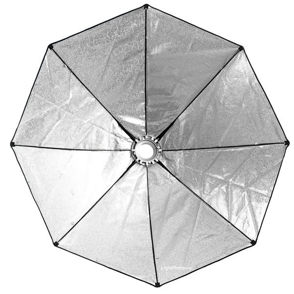 Восьмиугольный софтбокс (октобокс) с Bowens 150 cm (59"). Большой модификатор света обеспечивающий приятный мягкий свет. Восьмиугольный софтбокс добавляет большой красивый блик — идеально служит для портретов и групповых снимков.Данный профессиональный софтбокс произведён из высококачественного отражающего и рассеивающего материала. Внутренняя часть сделана из качественной отражающей серебряной ткани, снаружи материал чёрный. Внутри имеется белая мембрана для обеспечения более мягкого света. * Speed Ring крепления для установки софтбокса на осветители различных производителей приобретаются отдельно (арт.: 82606).